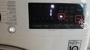 - Chu trình giặt chưa hoàn tất: Một số dòng máy giặt Toshiba, LG, Samsung… có chế độ khóa cửa tự động cho đến khi kết thúc hoàn toàn cả chu trình xả và vắt.