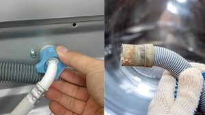 Ngay tại chỗ đầu nối ống cấp nước với máy giặt thường có lưới lọc nhỏ để ngăn cặn bẩn. Khi bụi, rêu hoặc cặn bám dày, nước sẽ bị cản trở, dẫn tới dòng chảy yếu hẳn đi.